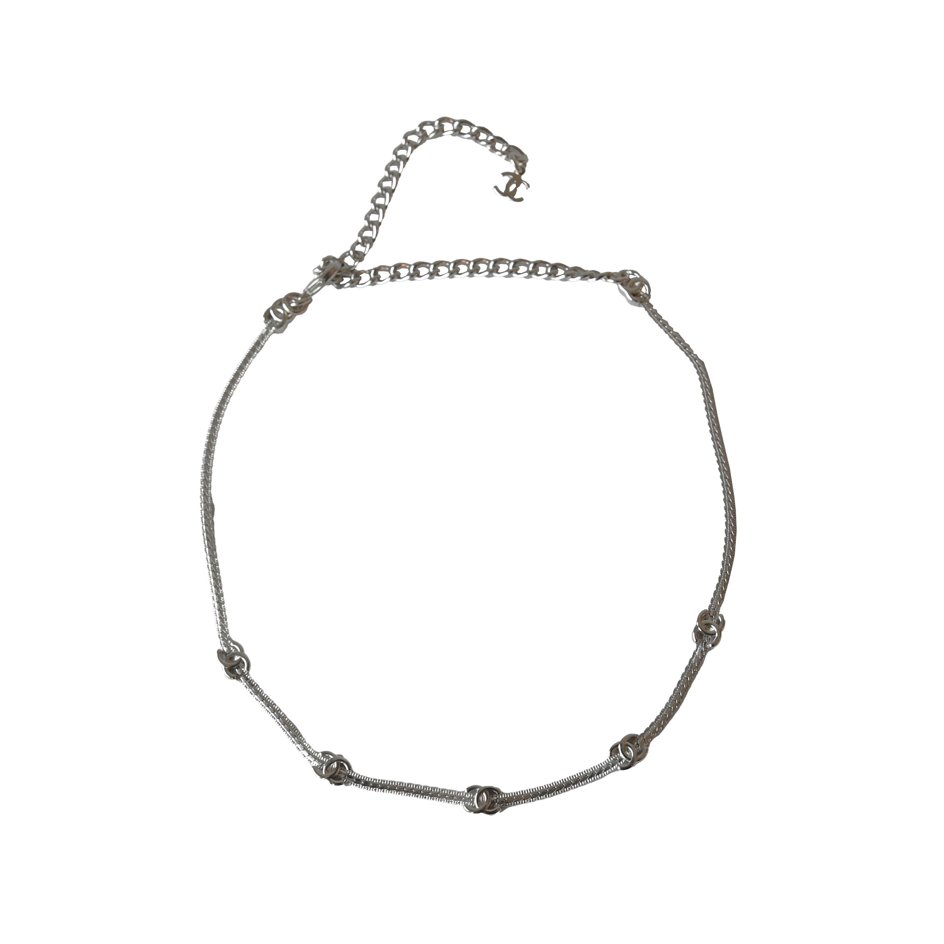 Chanel Five Metal CC Choker Necklace Silver