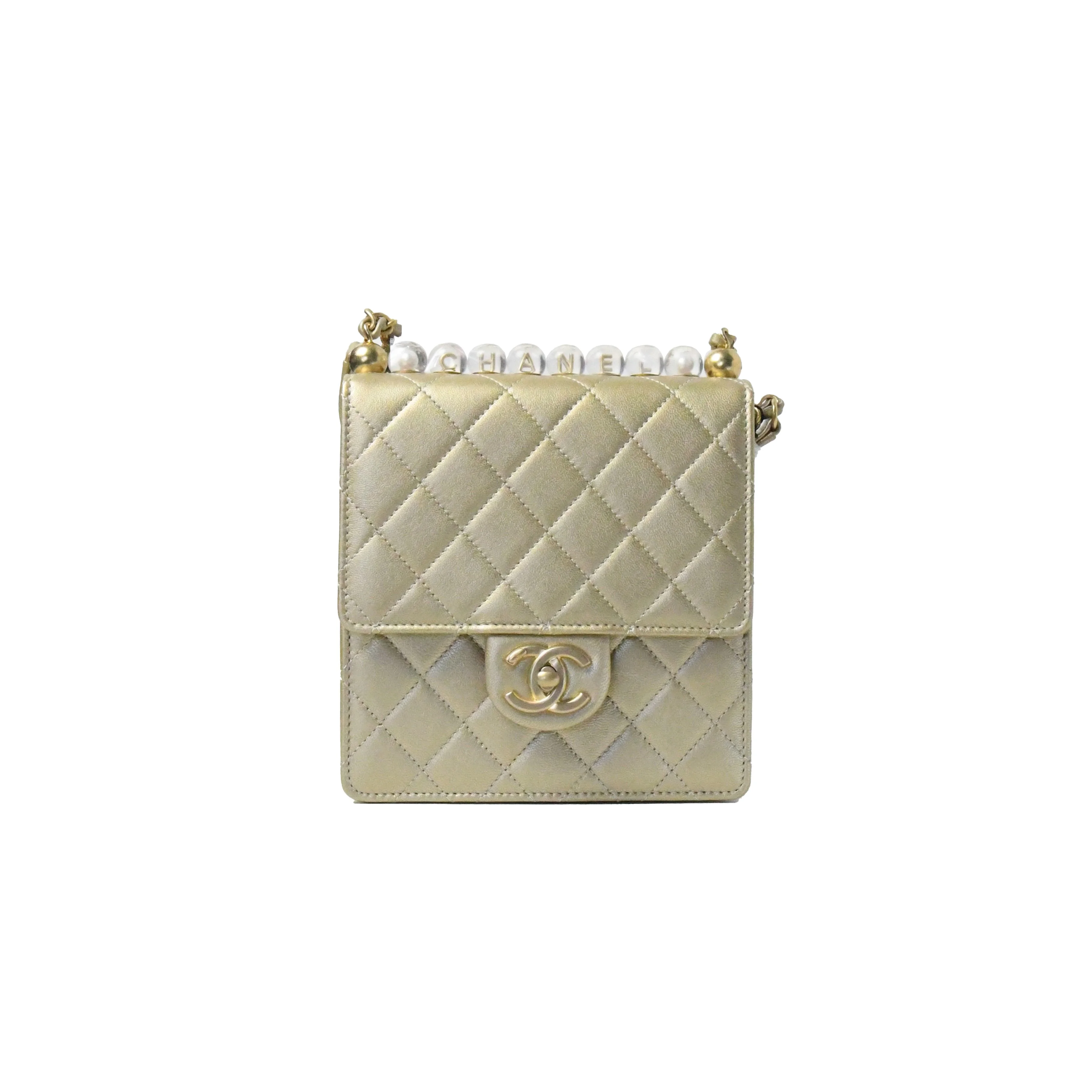 Chanel Goatskin Acrylic Beads & Gold-Tone Metal Flap Bag Gold
