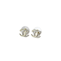 Chanel Metal and Crystal Strass CC Stud Earrings Gold