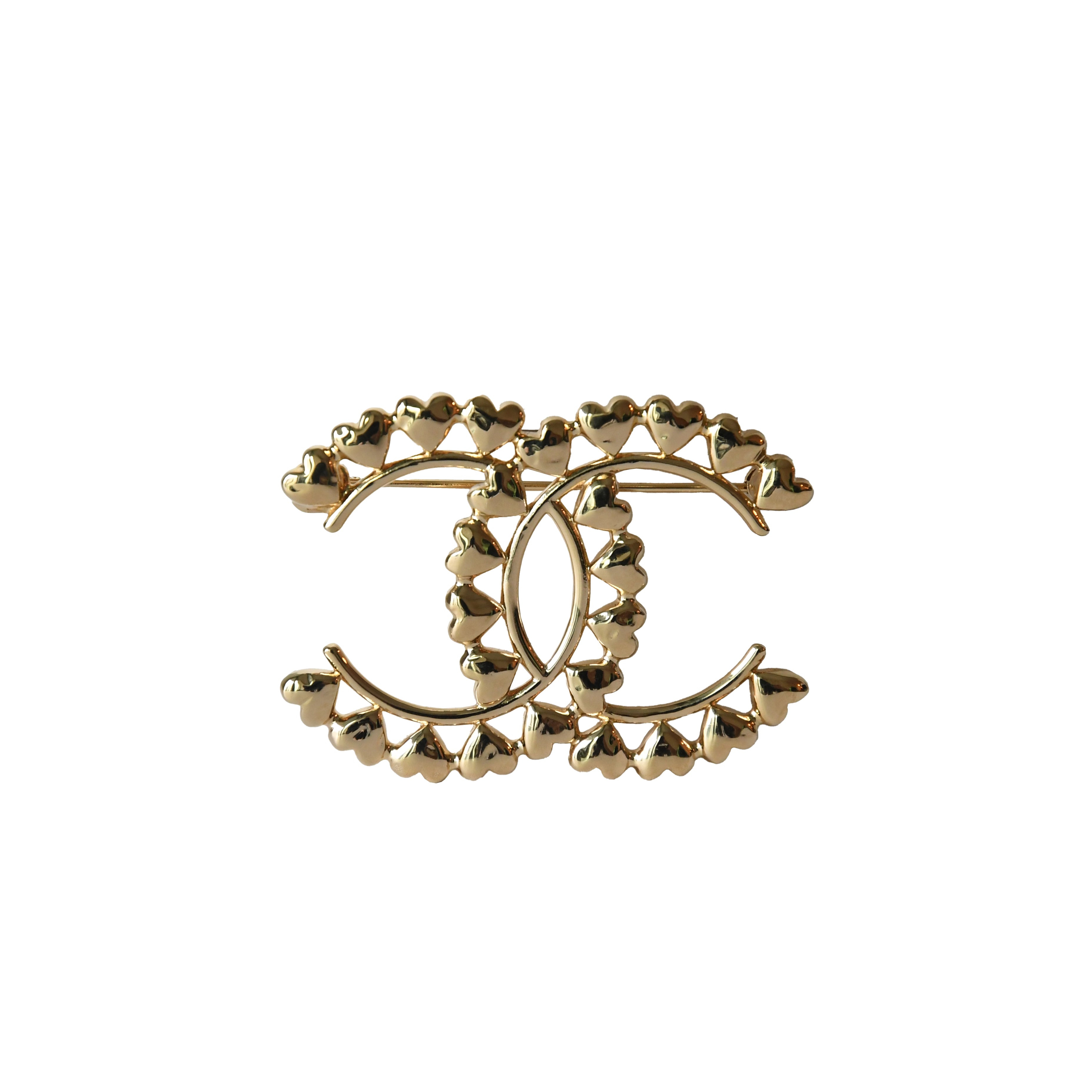 Chanel Metal CC Heart Brooch Gold