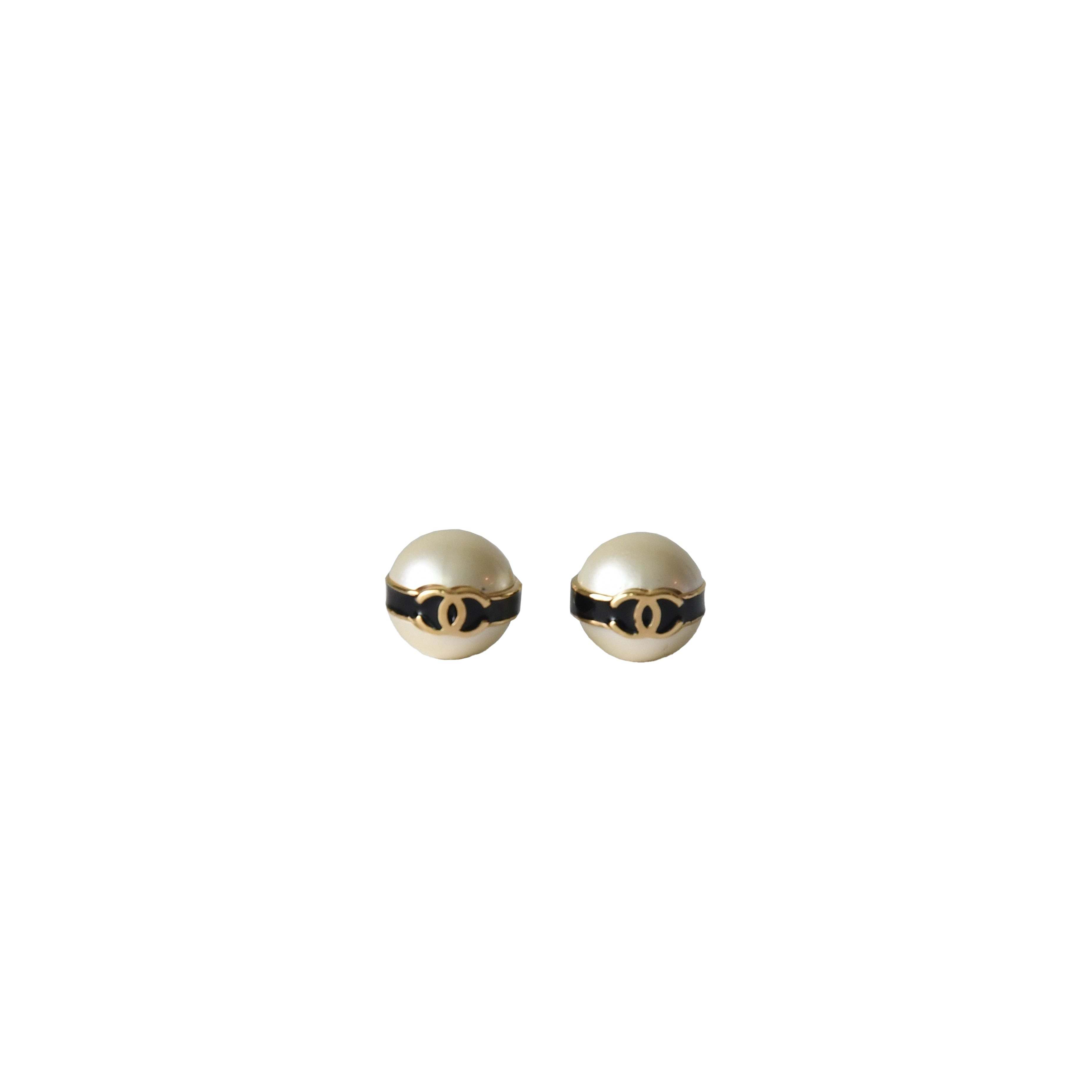 Chanel Metal CC Pearl Round Earrings Gold White Black