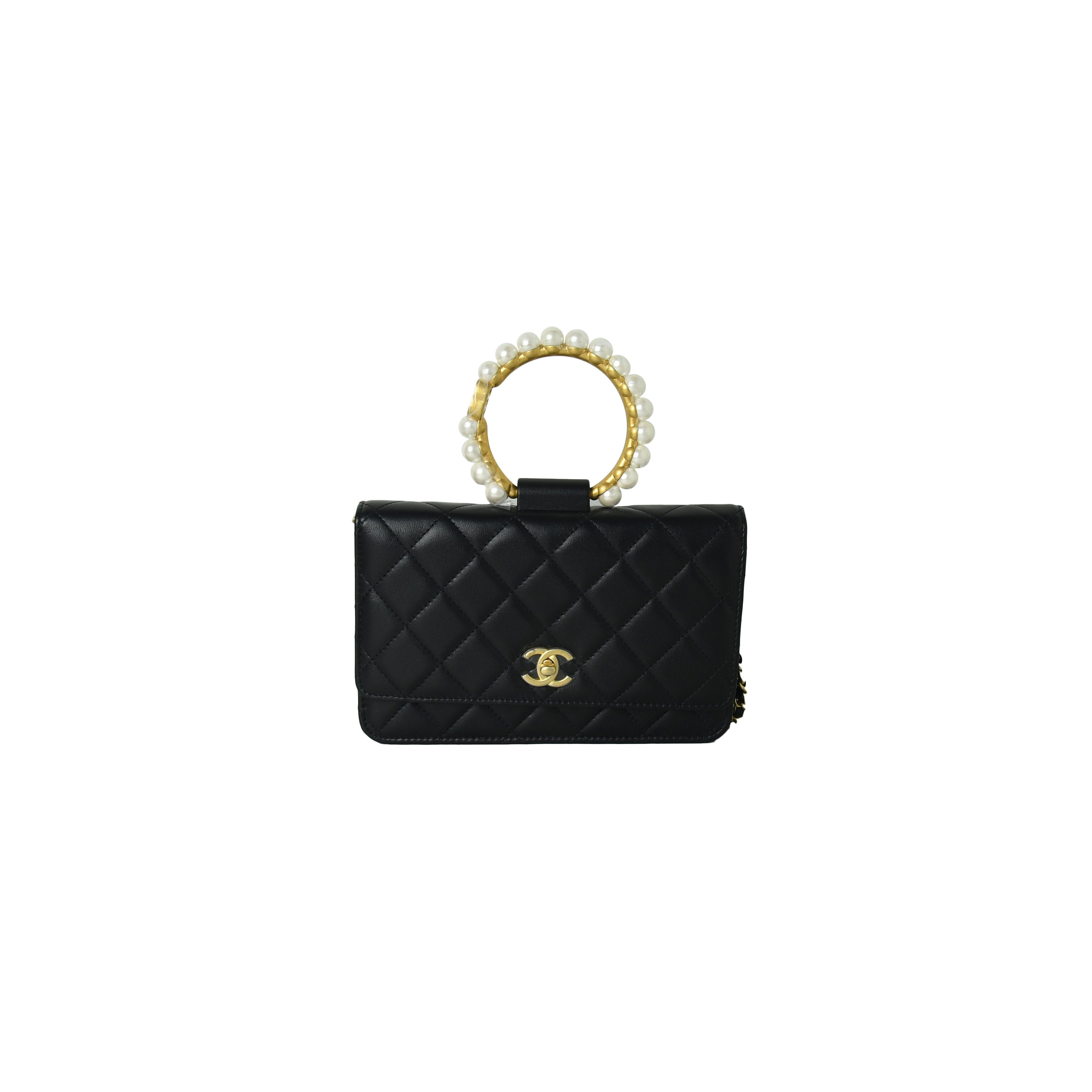 Chanel O Mini Bag Lambskin Imitation Pearls & Gold-Tone Metal Black