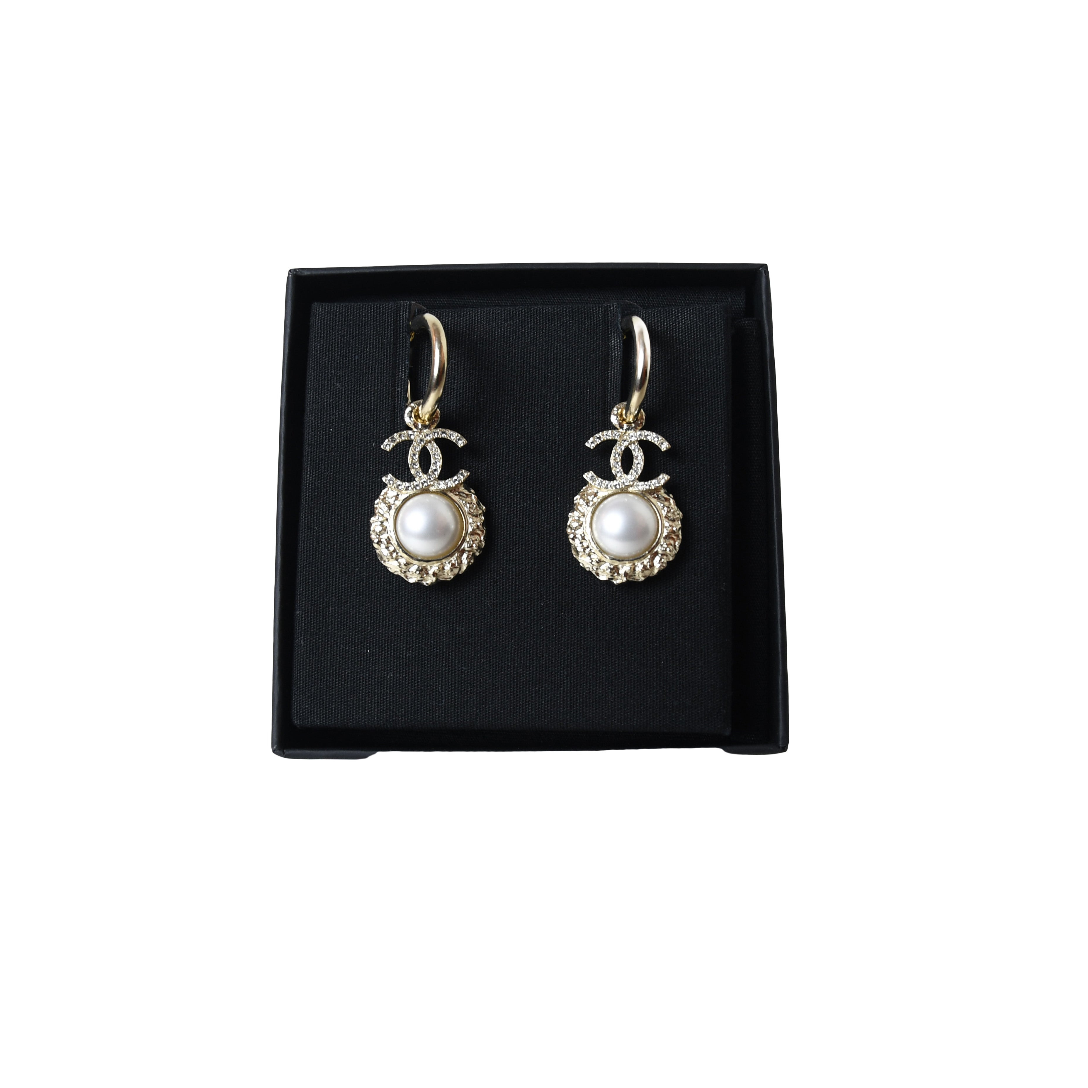 Chanel Pearl with CC Logo Hoop Earring Gold