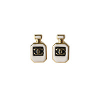 Chanel Resin CC Perfume Bottle Stud Earrings Gold White Black