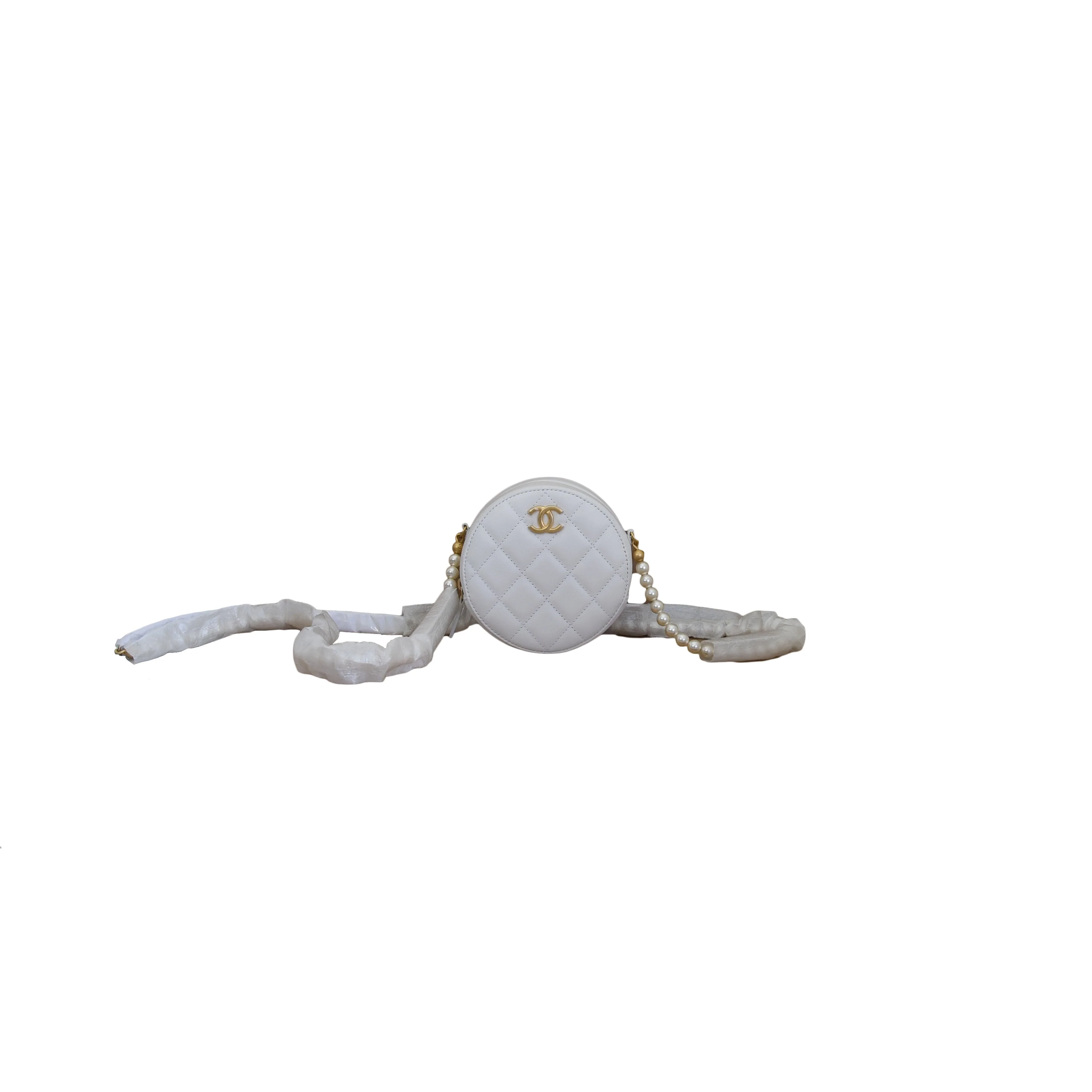 Chanel Round Clutch with Pearl Chain White