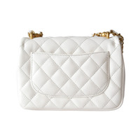Chanel Shiny Lambskin Quilted Pearl Twist Square Flap Bag Gold Hardware White