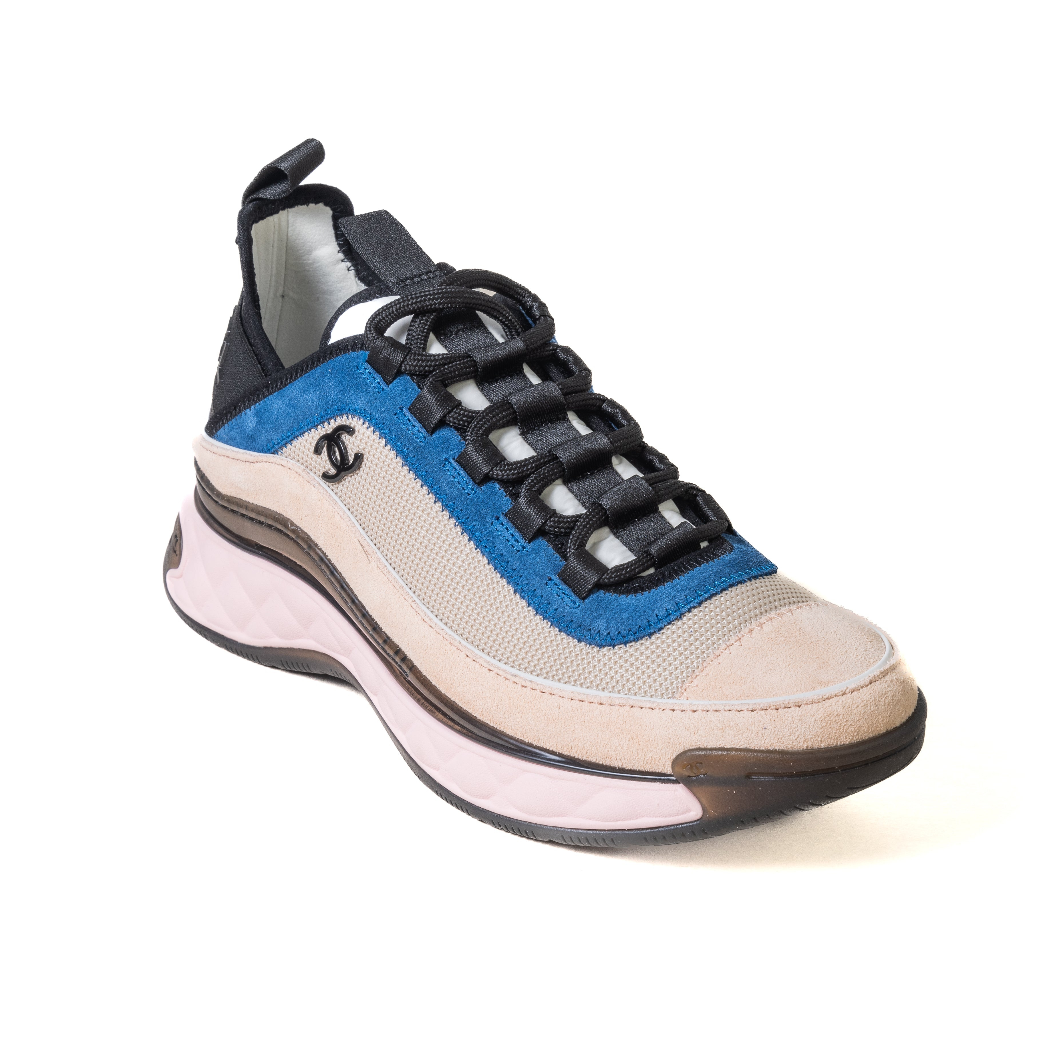 Chanel Suede Calfskin Fabric Sneakers Light Pink Beige Blue