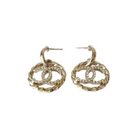Chanel Twist Crystal CC Drop Round Earrings Gold