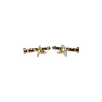 Chanel Woven Leather Metal Chain Hoop Earrings Gold Black