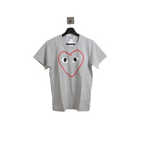 Comme Des Garcons Play Red Outlined Heart Tee Grey
