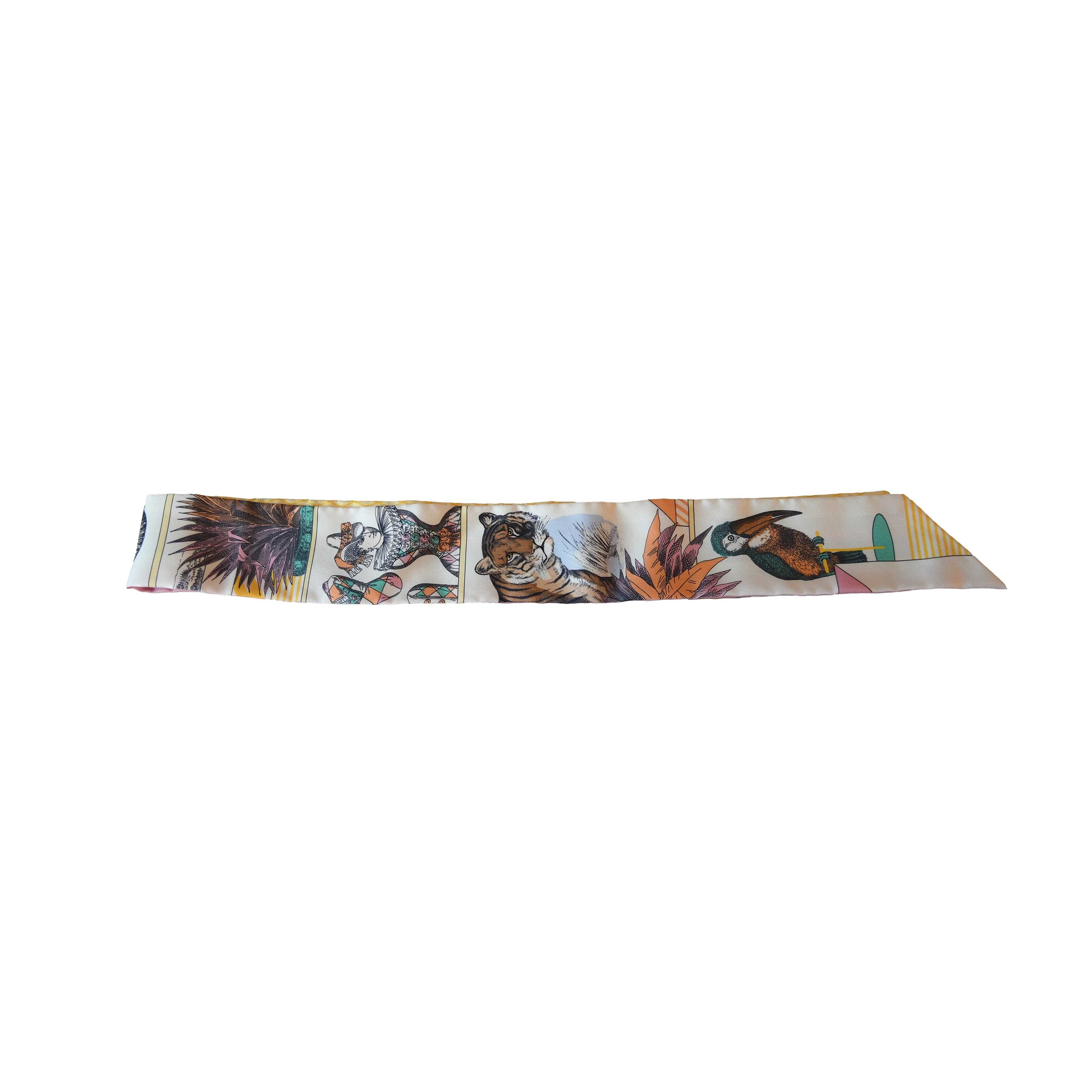Hermes Grand Theatre Nouveau Silk Twilly Scarf Orange