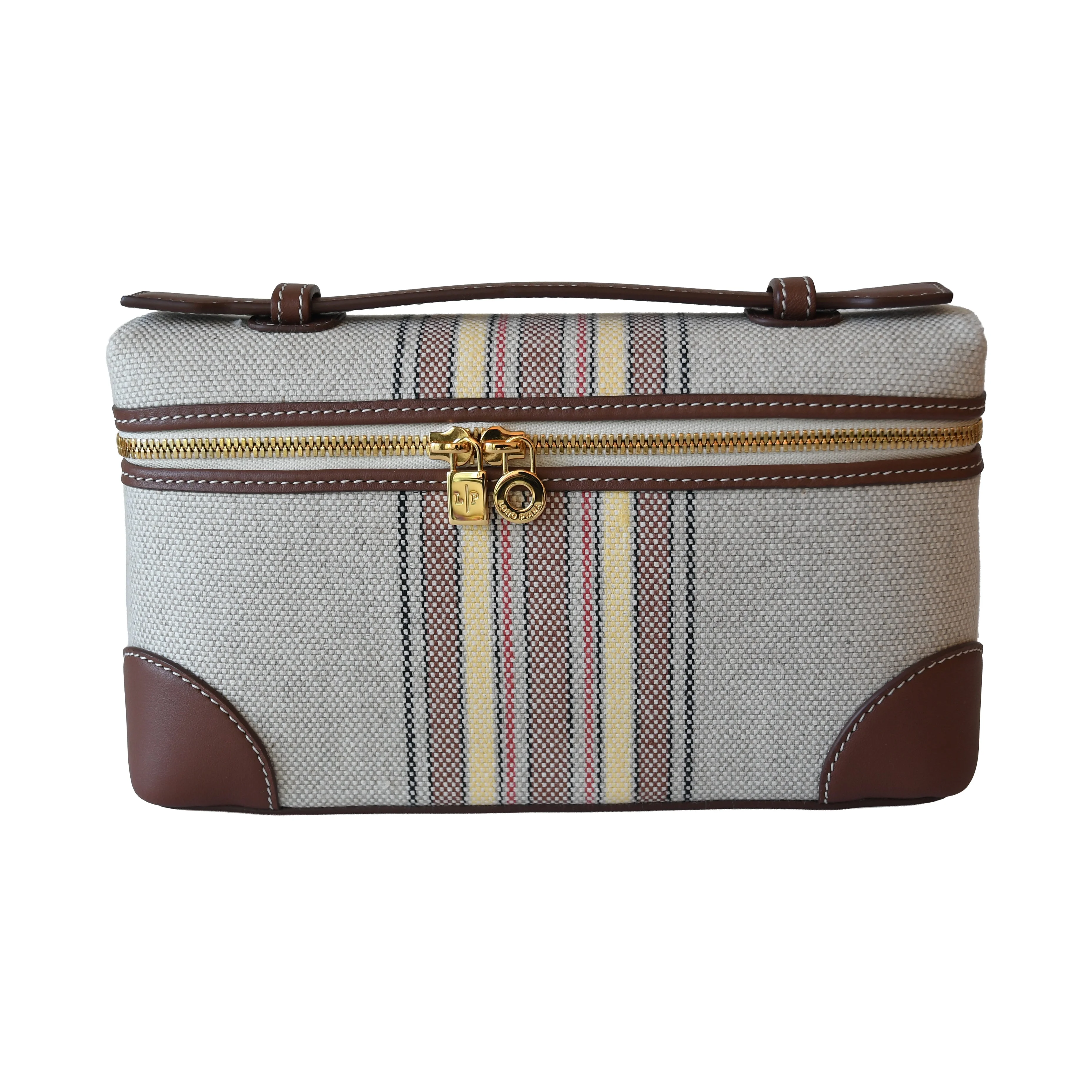 Loro Piana Extra Pocket L19 Pouch Canvas Stripes Gold Hardware Caramel Sugar