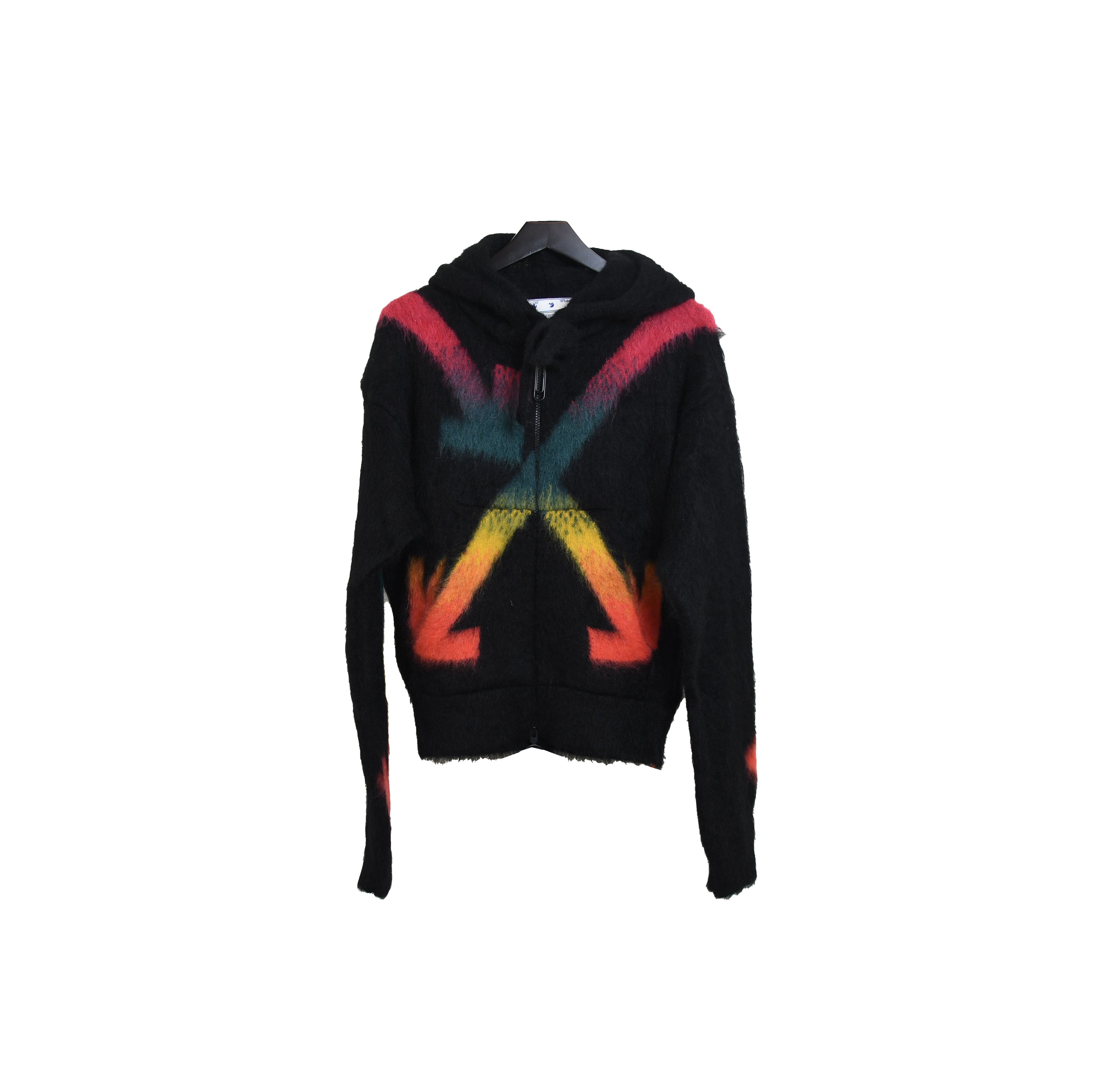 Off-White Fuzzy Arrow Zip Hoodie Black Rainbow