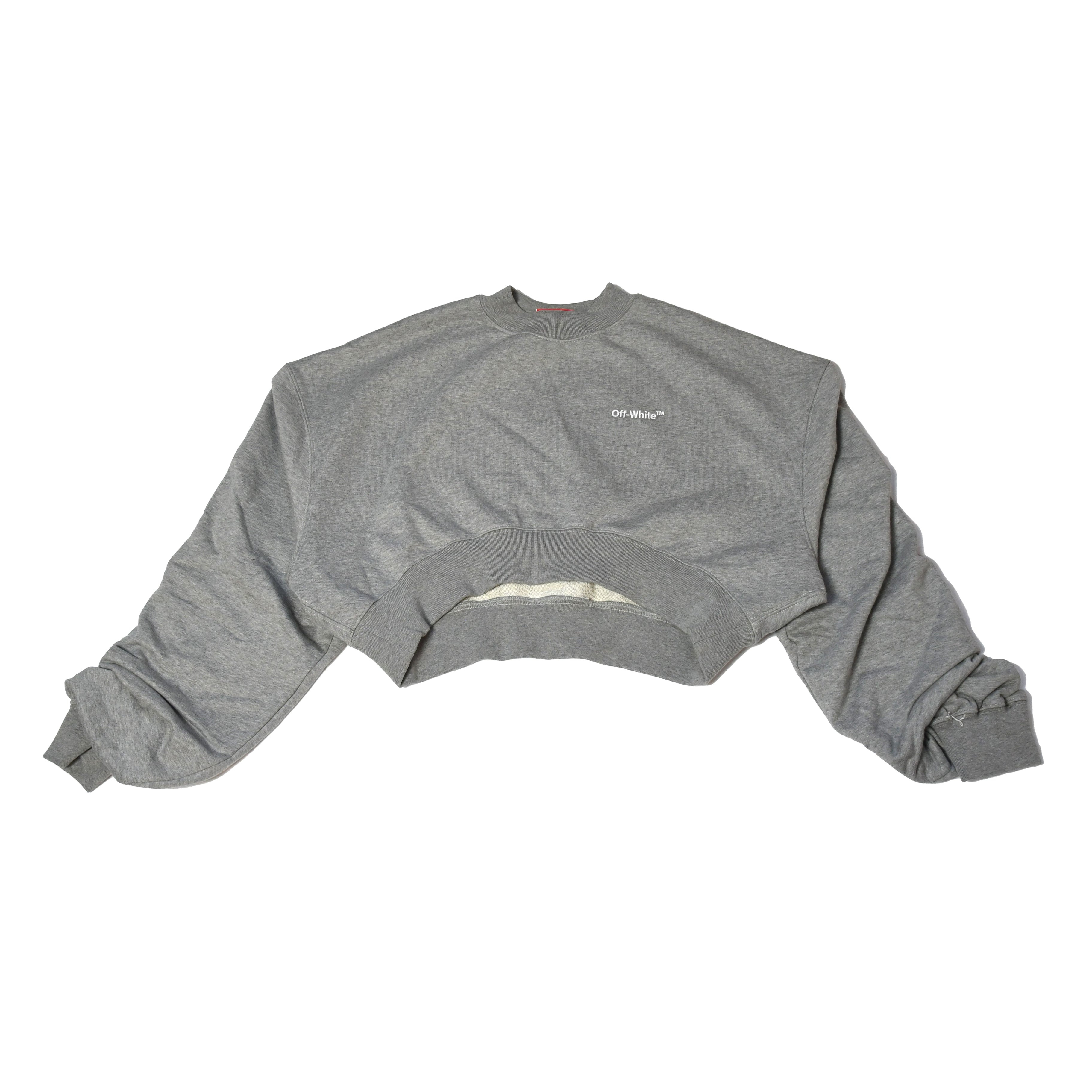 Off-White Oversized-Sleeve Cropped Crewneck Sweatshirt Grey