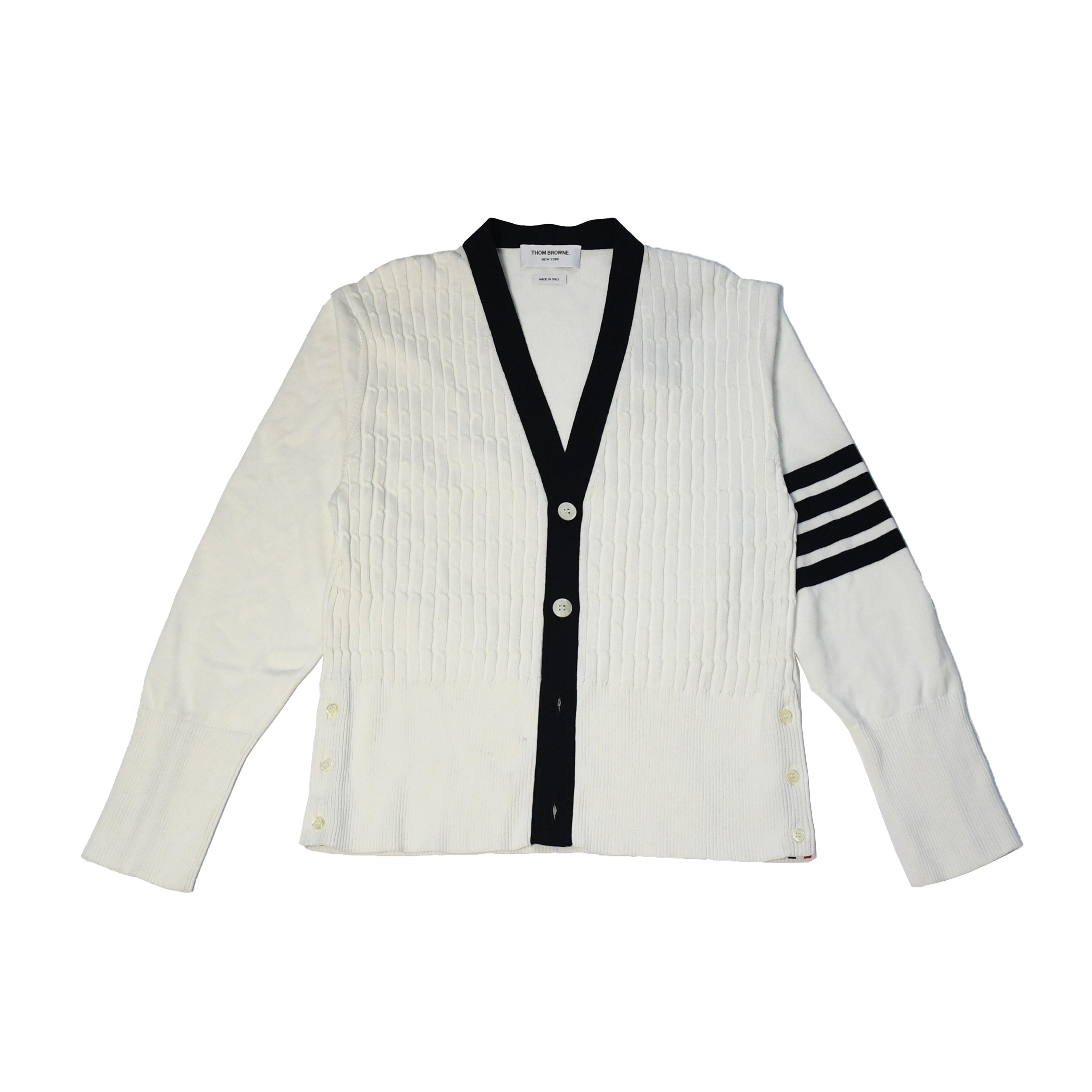 Thom Browne 4-Bar Stripe V-Neck Cardigan White