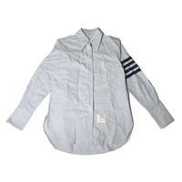 Thom Browne 4 Bar Striped Cotton Jacquard Shirt Blue White