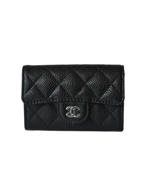 Chanel CC Quilted Caviar Flap Card Holder Wallet Black Silver