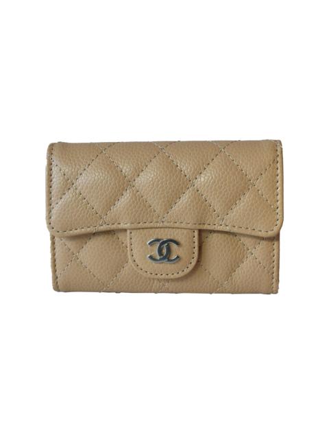 Chanel CC Quilted Caviar Flap Card Holder Wallet Beige Silver