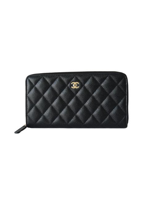 Chanel CC Caviar Quilted Large Gusset Zip Around Wallet Black