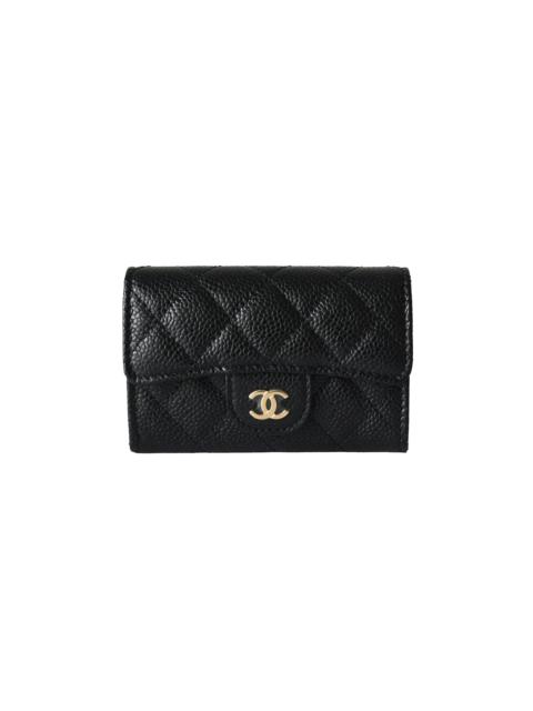 Chanel CC Caviar Quilted Trifold Compact Flap Wallet Black