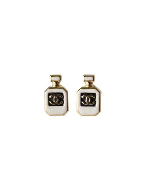 Chanel Resin CC Perfume Bottle Stud Earrings Gold White Black