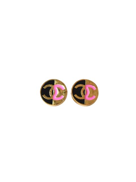 Chanel CC Metal Enamel Round Earrings Gold Pink Black