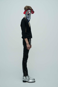Absolutely stunning pair of pants from the Soloist's SS17 collection, heavily inspired by Bowie/Ziggy Stardust. Metallic silver pants featuring a scale-effect imprinting throughout, sheep leather outer, soft cotton interior lining, slim silhouette, with zippers at the hem. In excellent condition, with tags. Size: tagged 46; fits ~28. Measurements on request. DM me on IG for a quicker response: @byeelingual