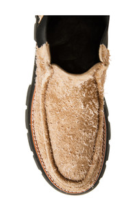 A layered platform and heavily lugged sole ground a cushioned Chelsea boot featuring a distressed suede upper and a pair of goring insets for comfortable wear. Pull-on style with elastic gore insets Cushioned footbed with arch support Leather upper and lining/synthetic sole Imported