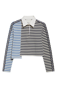 3.1 Phillip Lim Stripe Long Sleeve Cotton Polo Shirt in Midnight Multi at Nordstrom