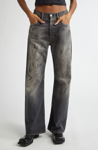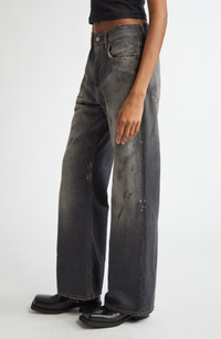 Acne Studios 2021 Black Trafa Paint Splatter Loose Fit Wide Leg Jeans at Nordstrom