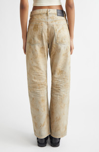 This Stockholm label got its start in textiles with 100 pairs of jeans in '97 and has been turning out remixed renditions since—case in point: these long, wide-staight-leg jeans cut from nonstretch Italian denim are expertly faded with hand-applied stain details for an authentic worn-out look. Zip fly with button closure Five-pocket style 100% cotton Machine wash, line dry Made in Italy Designer Clothing