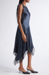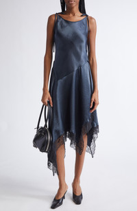Acne Studios Doyla Lace Trim Crinkled Satin Asymmetric Dress in Petrol Blue at Nordstrom
