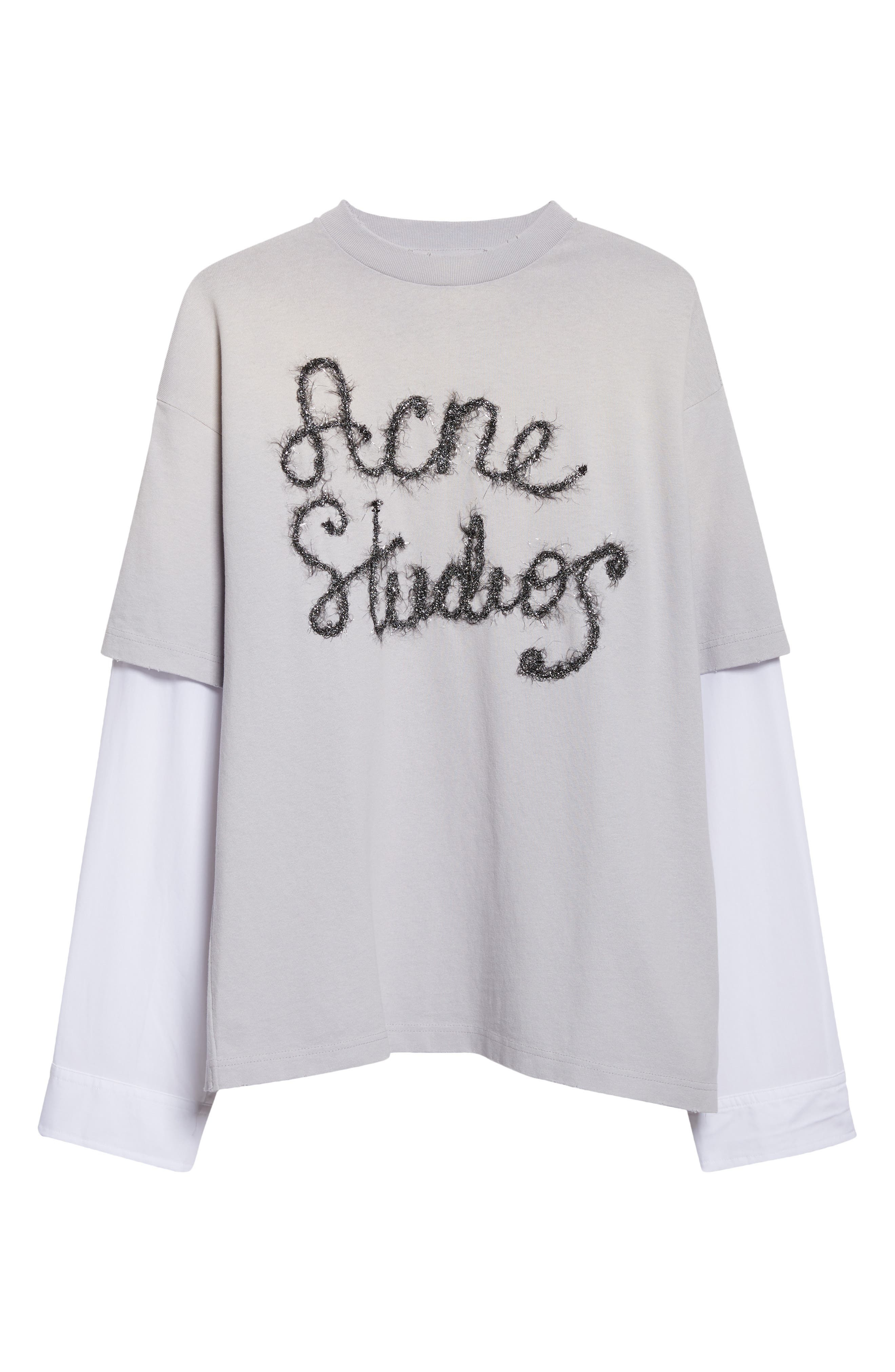 Acne Studios Edra Double U Tinsel Logo Layered T-Shirt in Light Blue at Nordstrom