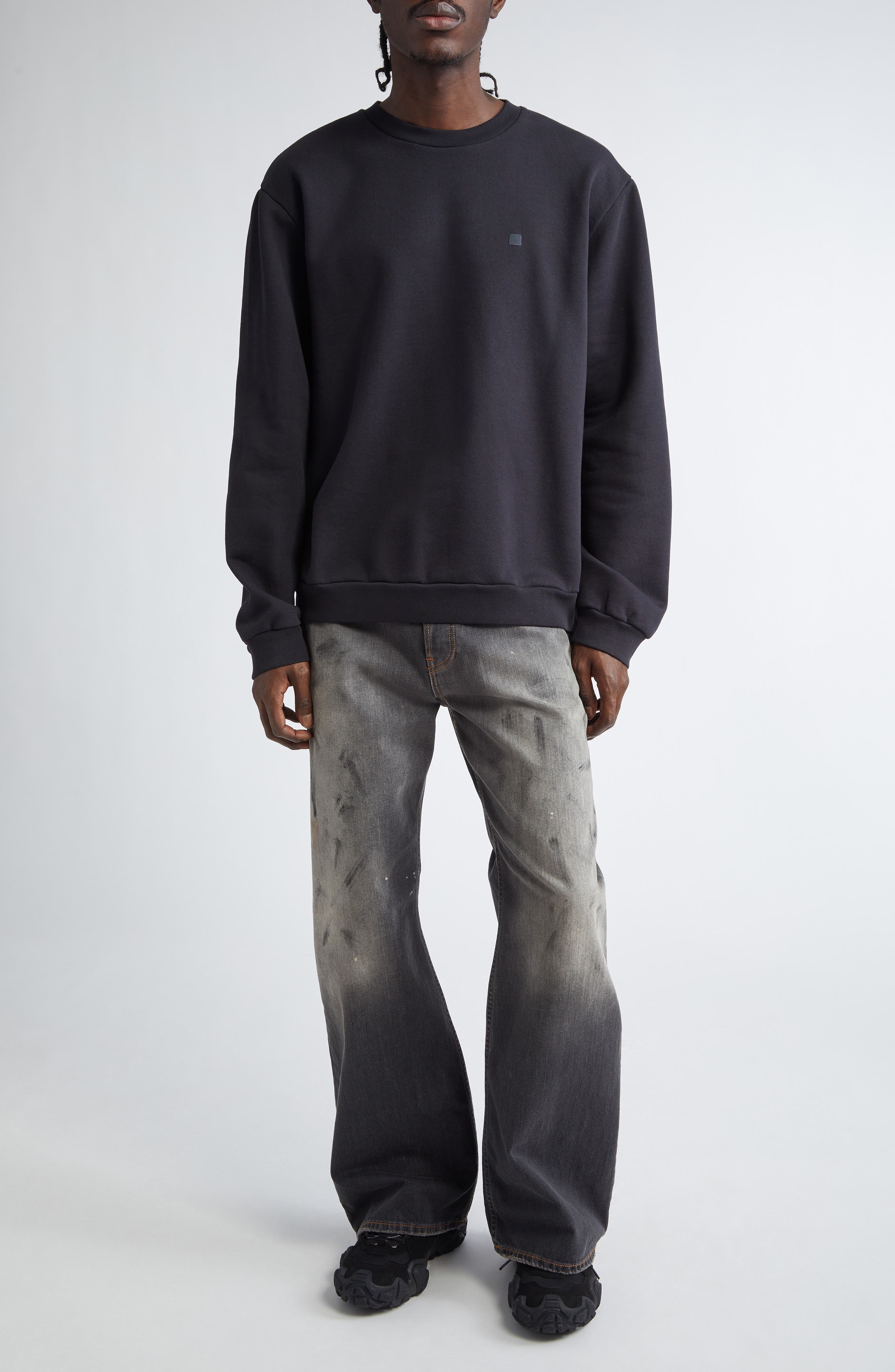 Acne Studios Embroidered Face Patch Fleece Sweatshirt in Black at Nordstrom