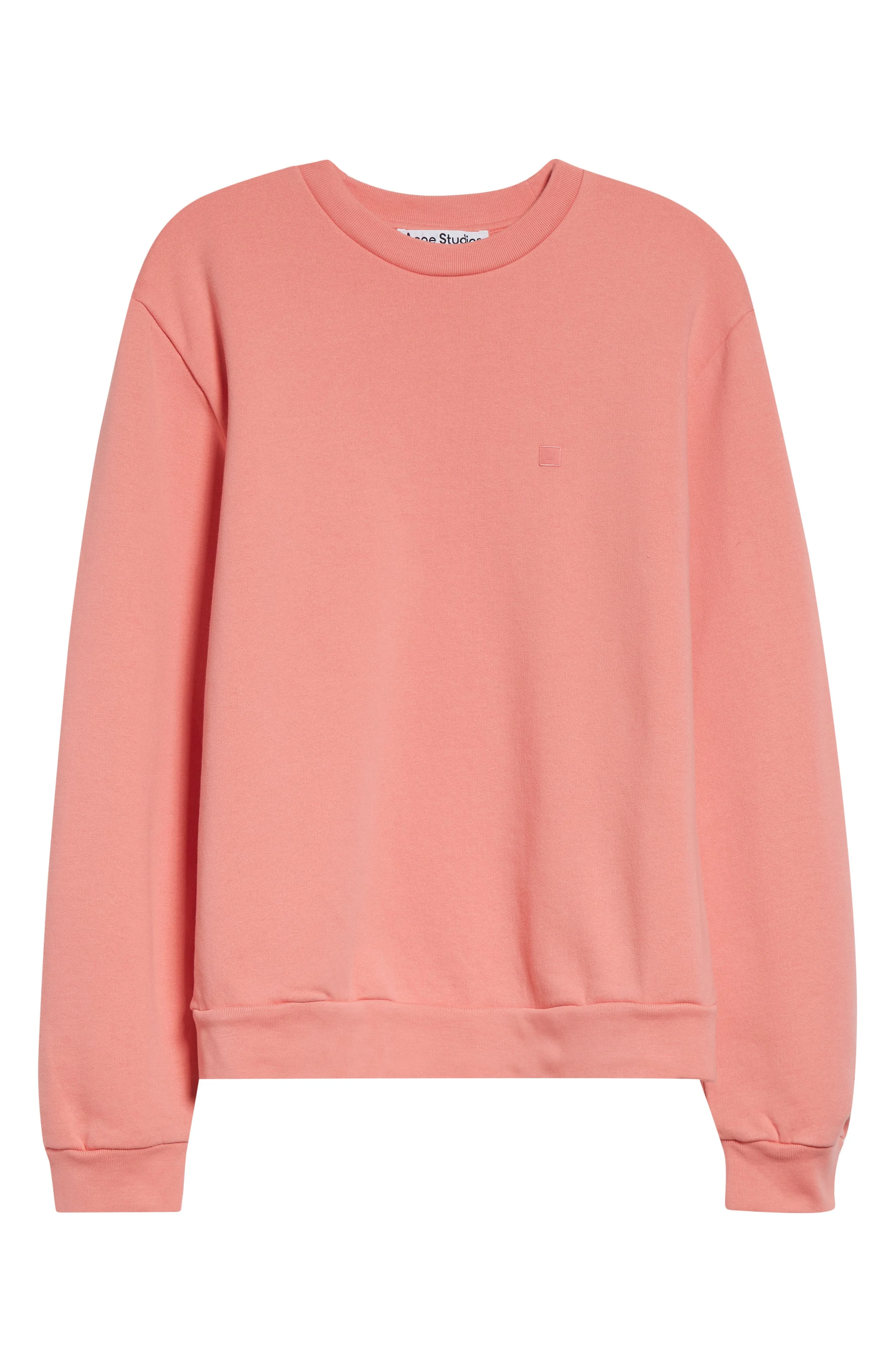 Acne Studios Embroidered Face Patch Fleece Sweatshirt in Tango Pink at Nordstrom