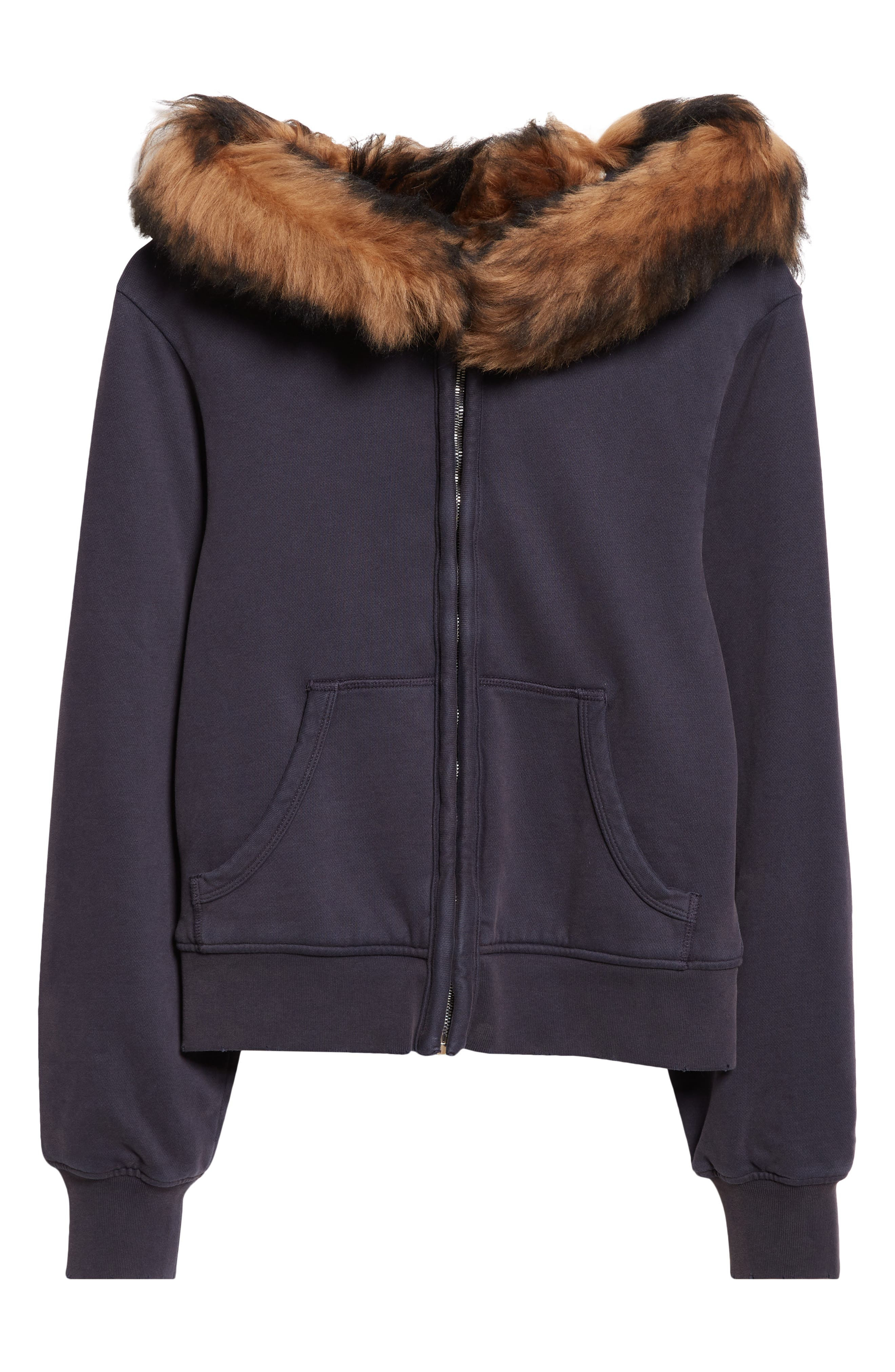 A zip-up hoodie—the unsung hero of casual, lazy days everywhere—gets a glam update with plush shearling ringing the hood. The cozy favorite is made from organic-cotton fleece that has undergone an acid-wash treatment to give it a vintage appearance. Front zip closure Drawstring hood with removable shearling trim Ribbed cuffs and hem Split kangaroo pocket Cotton lining 100% organic cotton with genuine-shearling trim Machine wash, dry flat; remove shearling before washing Made in Portugal Designer Clothing