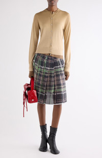 A plaid-inspired print animates this pleated skirt that offers an air of carefully curated disarray with the look of a lining peeking out from the waistband and uneven hem. Hidden back-zip closure Recycled-polyester lining 100% recycled polyester Dry clean Imported Designer Clothing