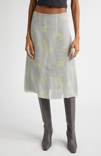Acne Studios Iranee Floral Georgette Skirt in Yellow/Grey at Nordstrom