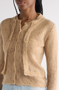 Featured on the Swedish label's spring '25 runway, this layered-effect cardigan made of a mohair blend features a shrunken fit suggestive of a laundry mishap. Front button closure Crewneck Long sleeves 55% mohair, 30% nylon, 15% wool Dry clean Imported Designer Clothing