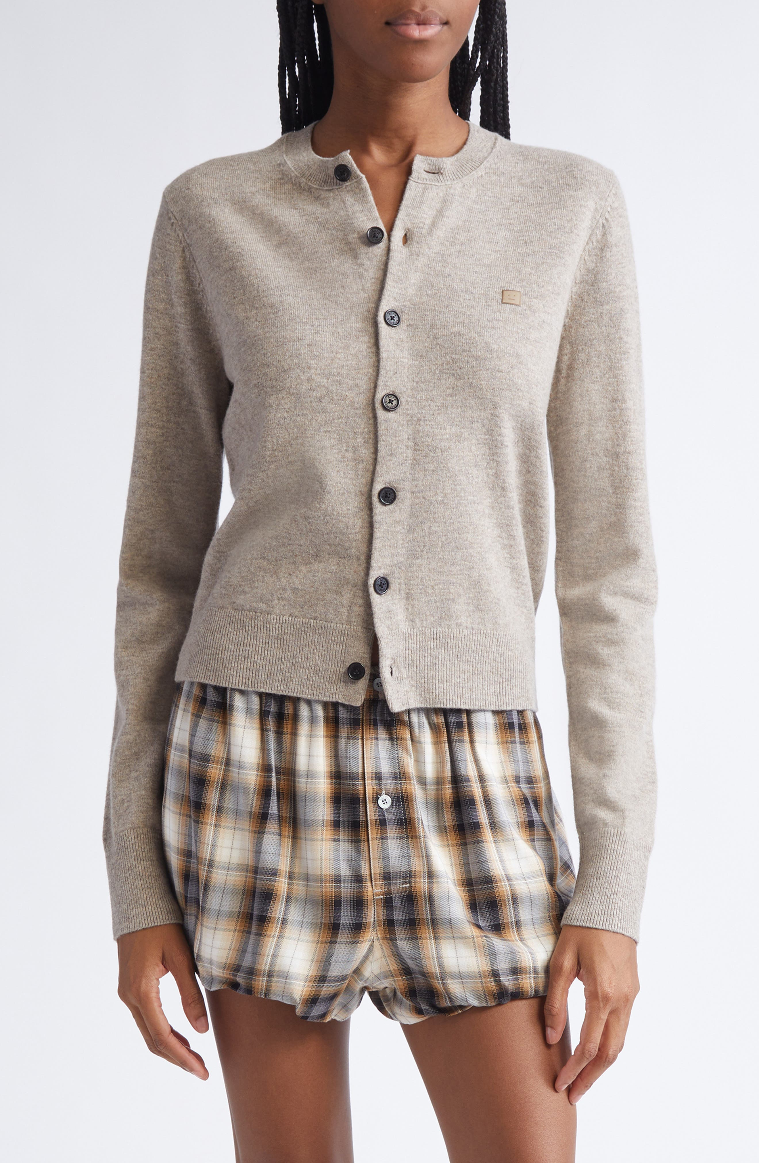 An easy go-to when temps dip, this wool cardigan enriched with insulating yak hair is imagined in a relaxed-yet-slim silhouette for effortless layering. An embroidered face patch—Acne's simple depiction of a Swedish citizen—keeps an even-keeled expression at the chest. Front button closure Crewneck Long sleeves Ribbed cuffs and hem 85% wool, 15% yak hair Dry clean or hand wash, dry flat Imported Designer Clothing
