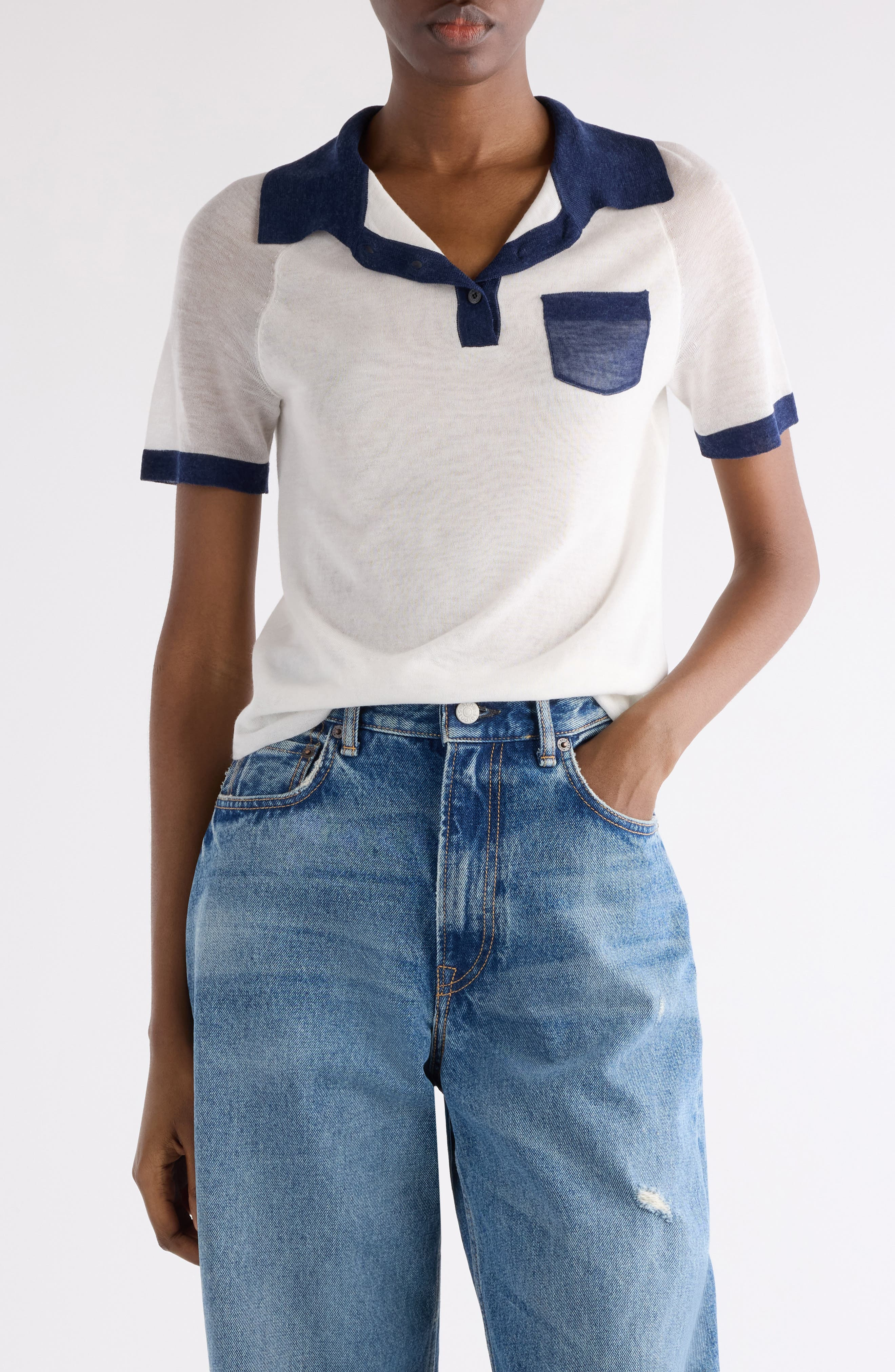 Acne Studios Kout Pocket Polo in White/Navy at Nordstrom