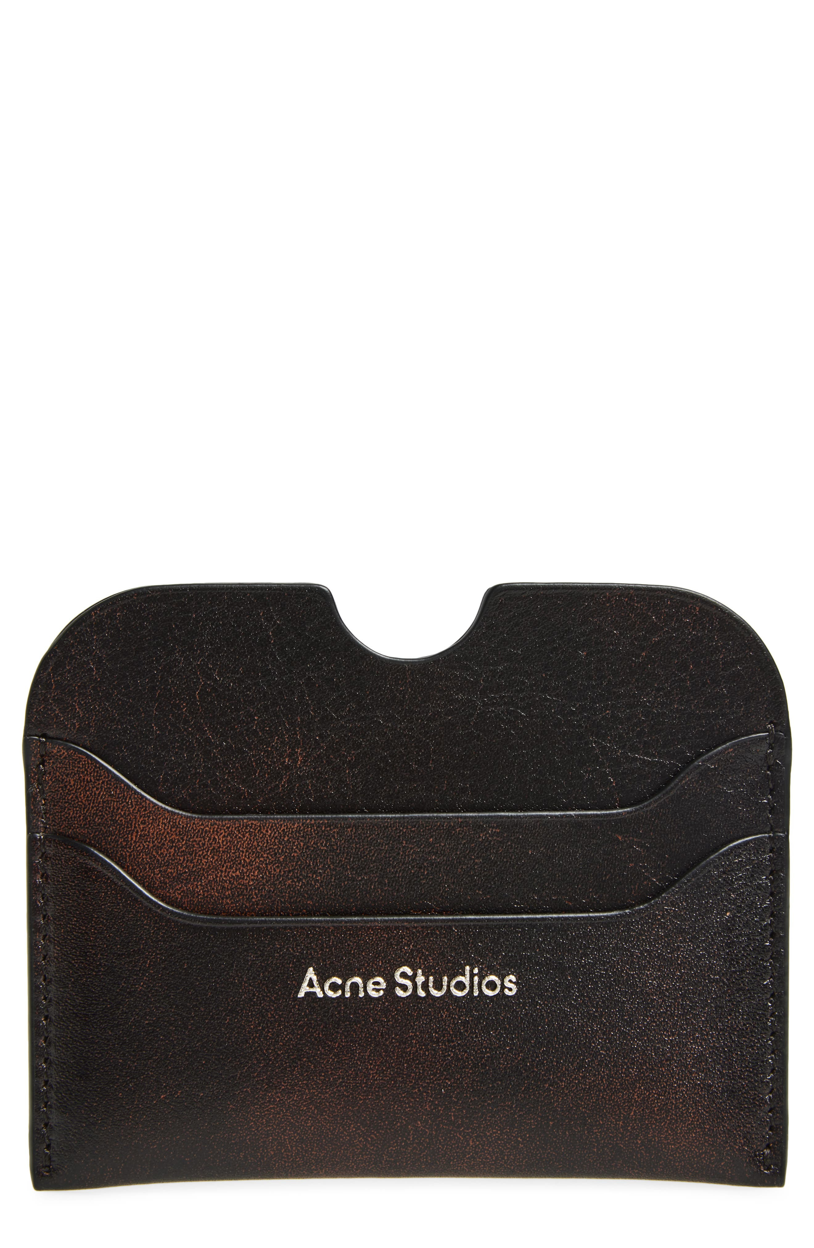 Acne Studios Large Elmas Aged Leather Card Holder in Dark Brown at Nordstrom