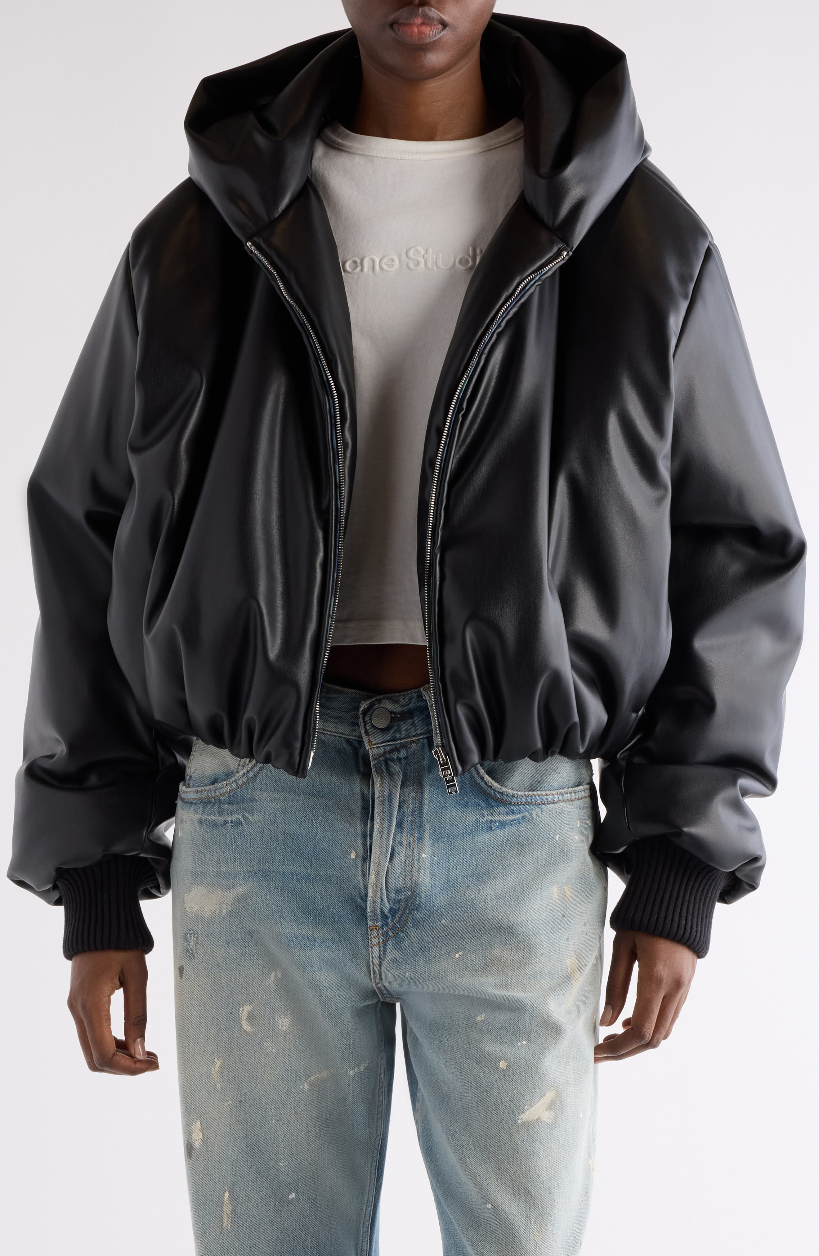 Acne Studios Offy Faux Leather Hooded Bomber Jacket in Black at Nordstrom