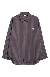 Acne Studios Pinstripe Logo Embroidery Button-Up Shirt in Black/White at Nordstrom