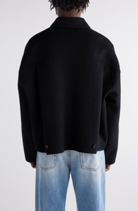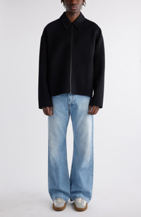 Button side tabs can be used to slightly rein in the super-relaxed silhouette of this jacket crafted from double-faced wool. 27" length (size 50EU) Two-way front-zip closure Point collar Dropped shoulders Front welt pockets Adjustable button side tabs Lined sleeves 100% wool Dry clean Imported Designer Clothing