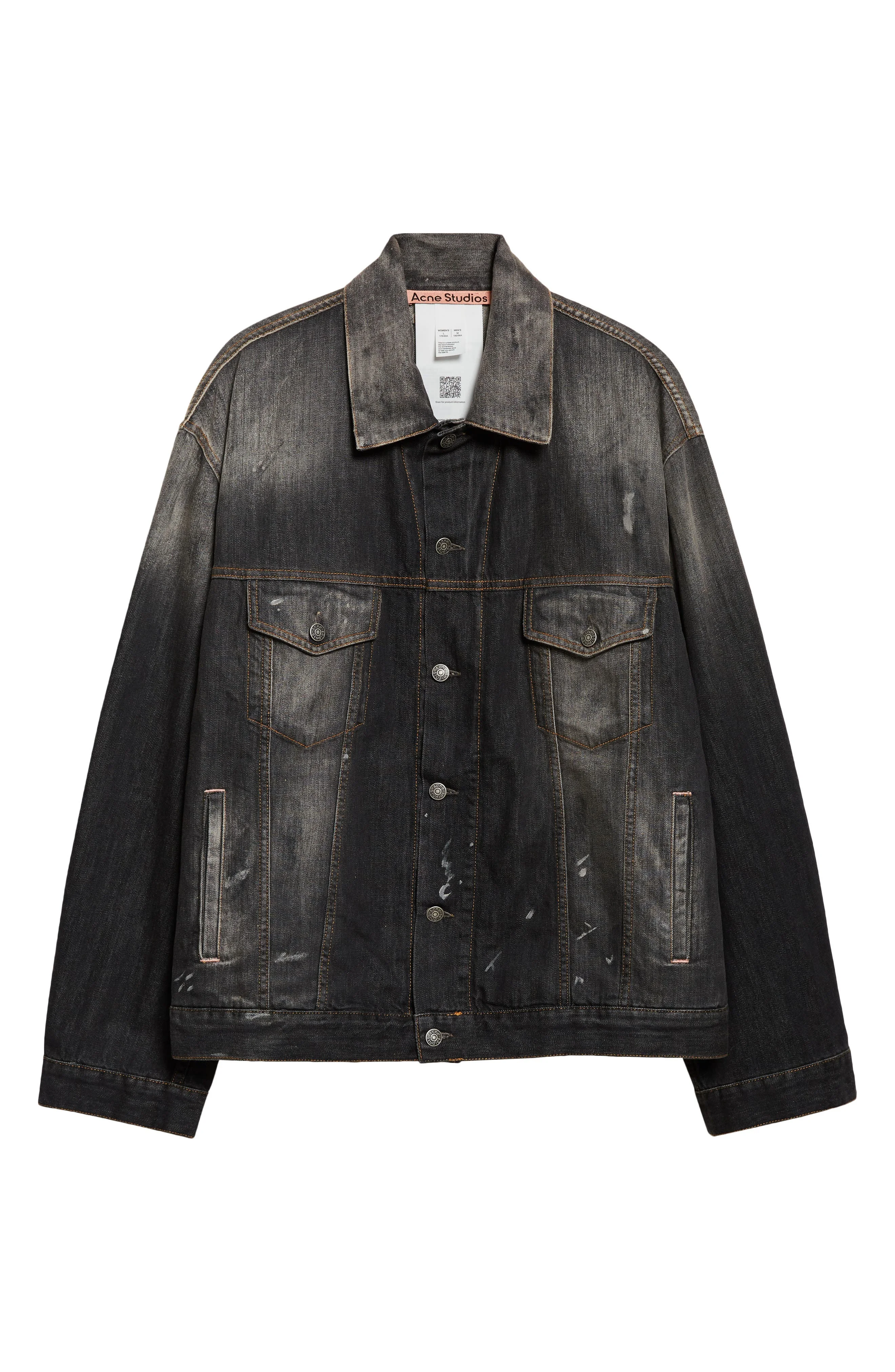 The Stockholm label got its start in textiles with 100 pairs of jeans in '97 and has been turning out remixed renditions ever since—such as this distressed jean jacket crafted in Italy and expertly faded and paint-splattered to a timeworn patina. Front button closure Spread collar Button cuffs Chest button-flap pockets; front welt pockets Adjustable button side tabs 100% cotton Dry clean Made in Italy Designer Clothing