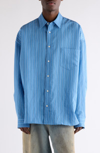 Acne Studios Roffia Stripe Overisze Button-Up Shirt in Blue Multi at Nordstrom