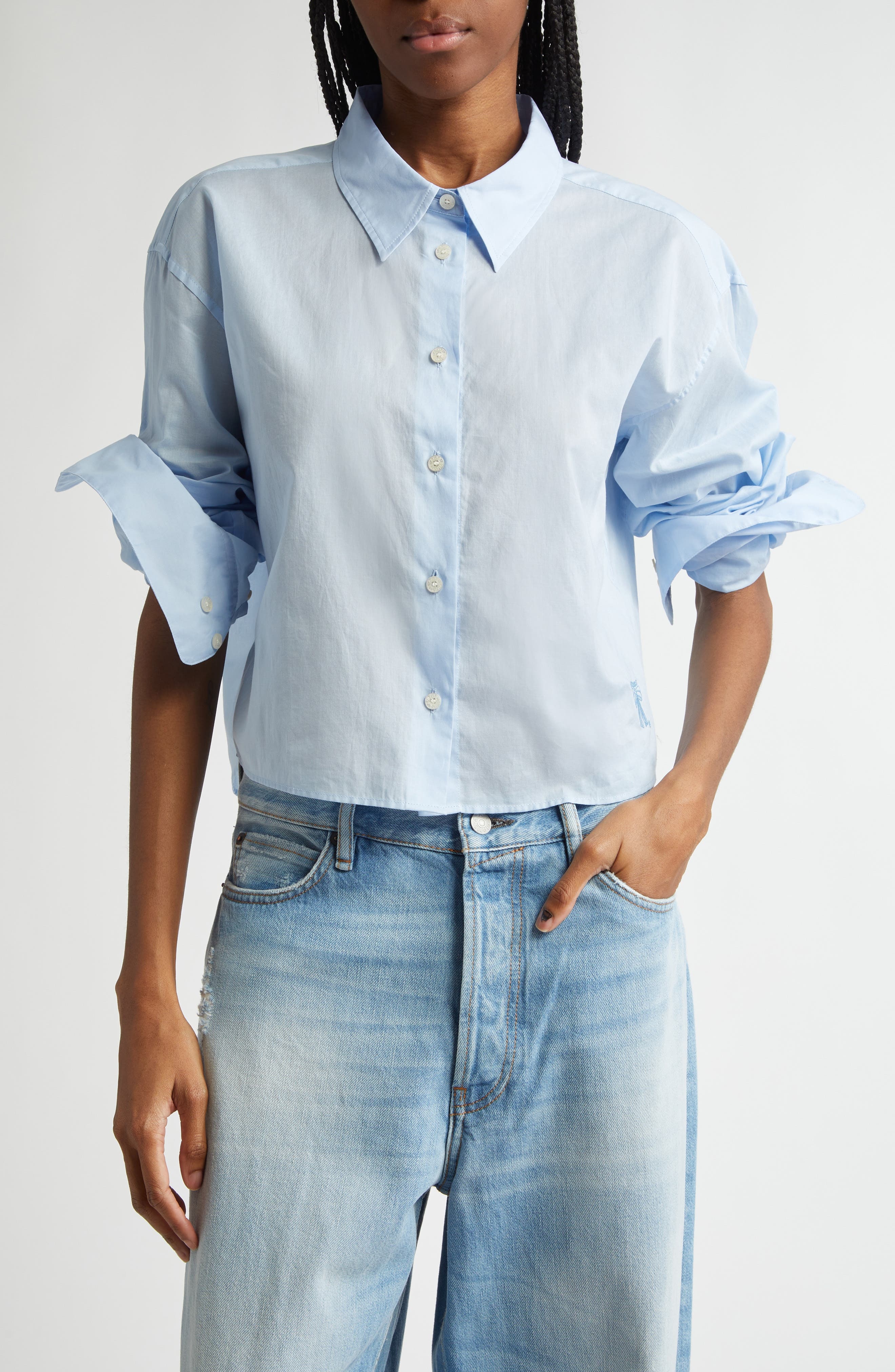 Acne Studios Satai Crop Cotton Voile Button-Up Shirt in Baby Blue Djy at Nordstrom