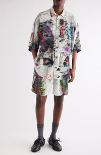 Acne Studios Setar Paint Print Button-Up Shirt in White Multicolor at Nordstrom