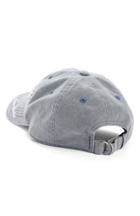 Artful fading and retro embroidery reminiscent of souvenir postcards delivers well-traveled style in this cotton-twill cap that makes a first-class finishing touch. Adjustable back strap 100% cotton Dry clean Imported